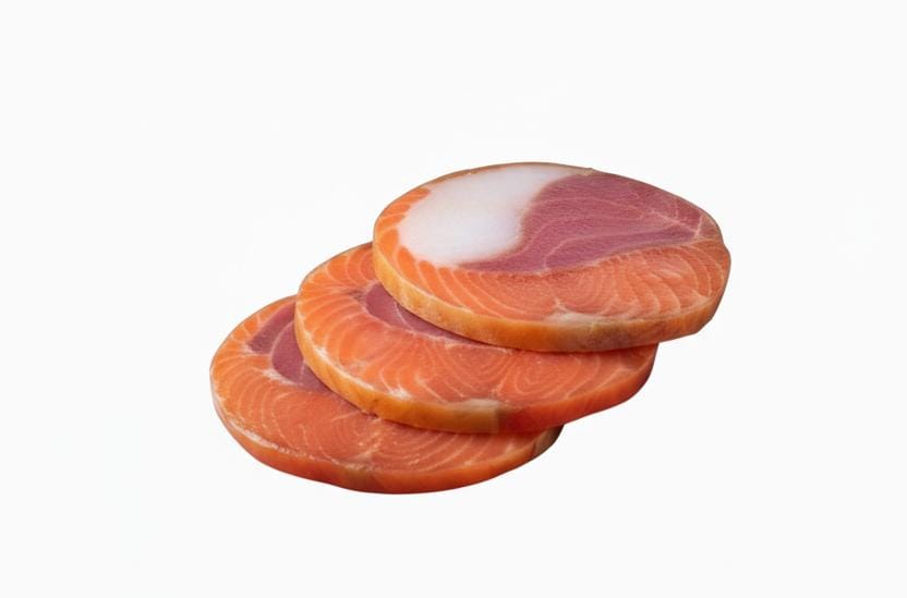 פרוסות עדינות של רול המורכב משלושה סוגי דגים מובחרים — טונה עסיסית, סלמון עדין והליבוט רך. כל פרוסה דקה שומרת על שילוב הרמוני של טעמים ומרקמים, עם ניחוח עישון טבעי עדין המדגיש את הטריות והאיכות. ארוז בוואקום במנות של 100 גרם לנוחות ההגשה ולשמירה ממושכת. מוצר כשר תחת השגחת הרב לנדא.