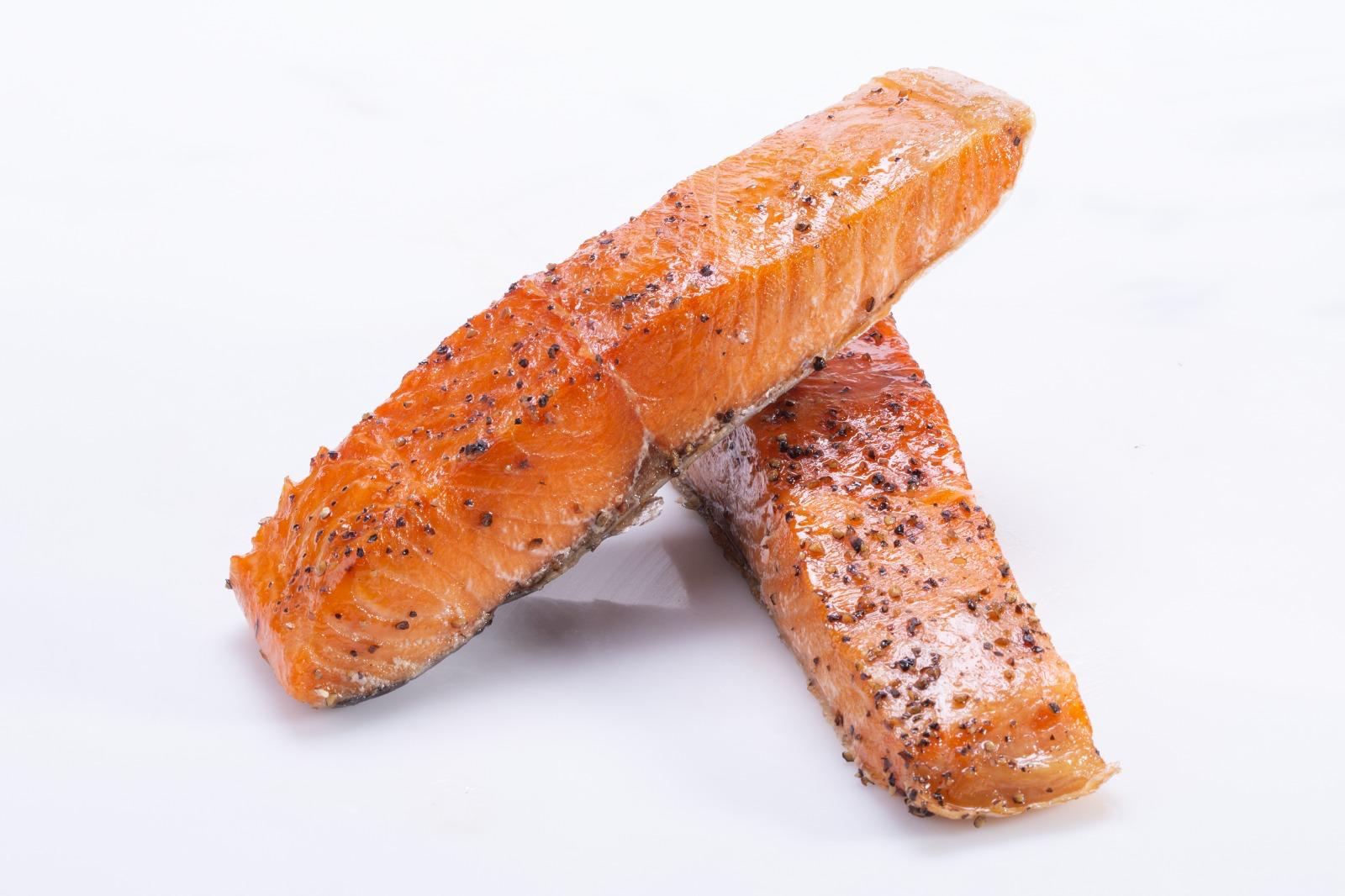 סלמון מובחר בעישון חם עם פלפל שחור.